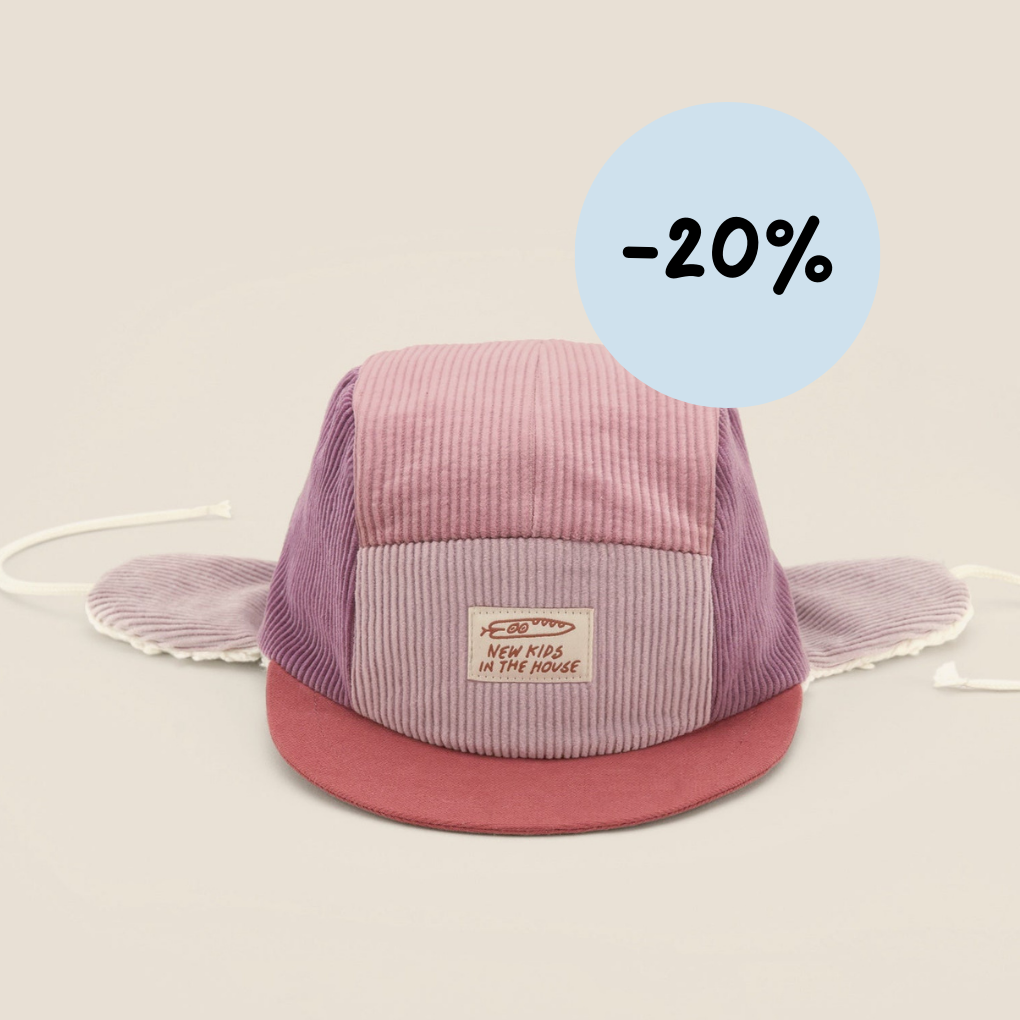 Robin is a 5-panel winter cap made of corduroy with an extra warm plush lining. The cap is manufactured from industrial leftovers and certified organic cotton plush. The cap comes in 4 different sizes and fits babies and kids up to 8 years. This style has our signature snake-logo embroidered on the front.